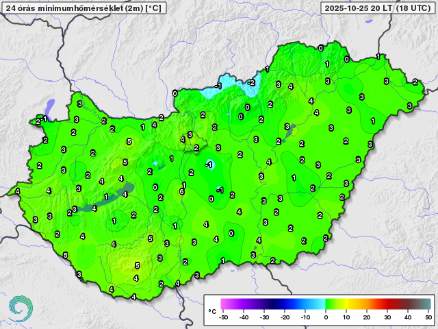 Minimum hőmérsékletek 2025. október 25-én (Celsius fok)
