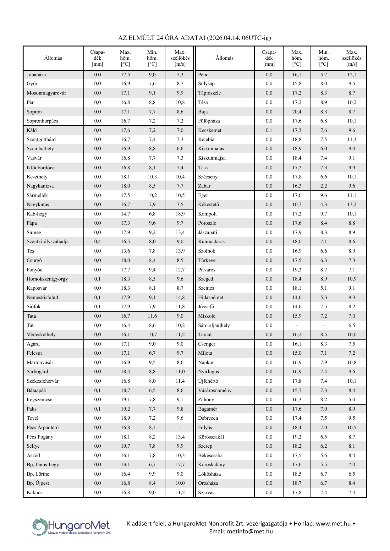 HungaroMet: 2026. április 14. 12:10 (10:10  UTC)  [pd4p]