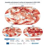 A Meteorológiai Világszervezet (WMO) és az Európai Középtávú Időjárás-előrejelzési Központ (ECMWF) is sajtóközleményt adott ki, melyben megerősítették, hogy 2025 a három legmelegebb év egyikének számít a mérések kezdete óta, folytatva ezzel a rendkívül magas globális éves átlagos felszínhőmérsékletek sorozatát. Az elmúlt 11 év mindegyike a 11 legmelegebb év közé tartozik, miközben az óceánok felmelegedése továbbra is töretlen. Magyarországon 2025 a hetedik legmelegebb és a negyedik legszárazabb év volt 1901 óta a HungaroMet Nonprofit Zrt. előzetes adatai szerint. |